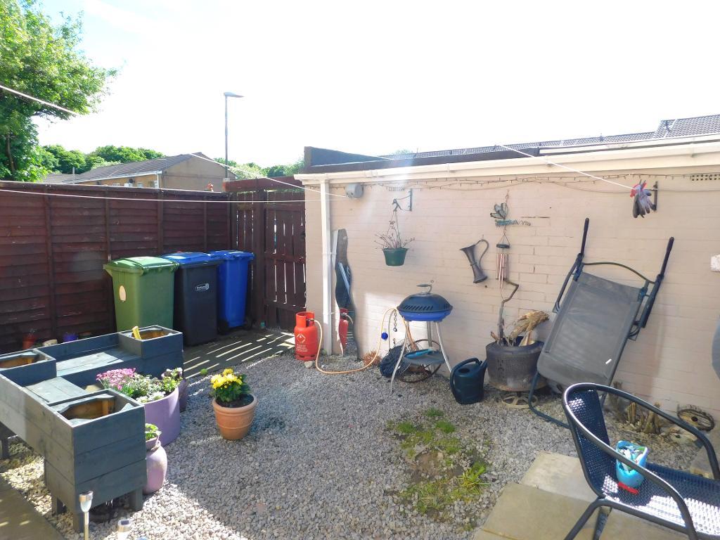 To the front elevation there is a fenced enclosed patio area which looks out on to an open planned lawned area, whilst to the rear elevation there is a fenced enclosed paved garden, garage.