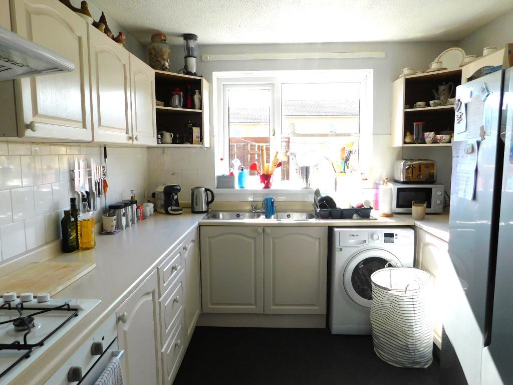 11' 6'' x 9' 5'' (3.52m x 2.89m) Upvc double glazed window to the rear elevation, wall and base units in antique white, cream work surfaces, stainless steel sink unit with dual taps, part tiled walls, electric oven, gas hob, extractor hood, plumbing for an automatic washing machine., door leading to the dining room/lounge.
